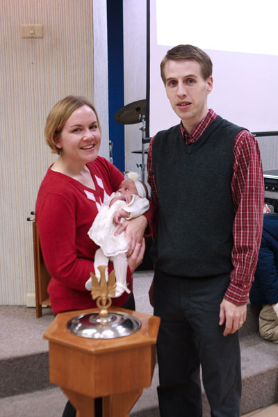 Today was a special day for Little H....she was baptized today. She was able to have two of her four godparents around and one of her godparents was able to do the actual baptism of her. (She'll get to meet her other godparents this summer!) She did a great job for being 1 week old...being at church and outside.